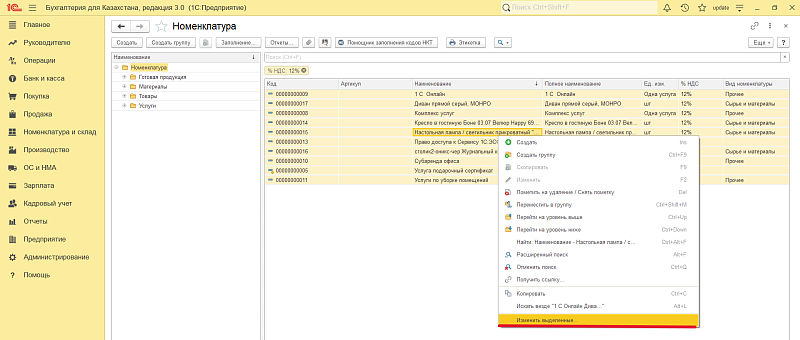 Шаг 3. Массовое изменение ставки НДС в номенклатуре