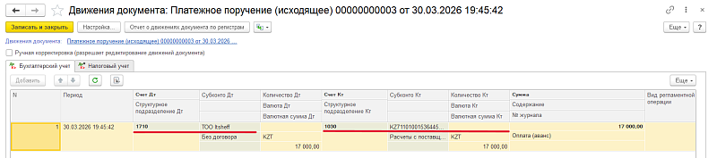 При оплате важно корректно отразить две операции: