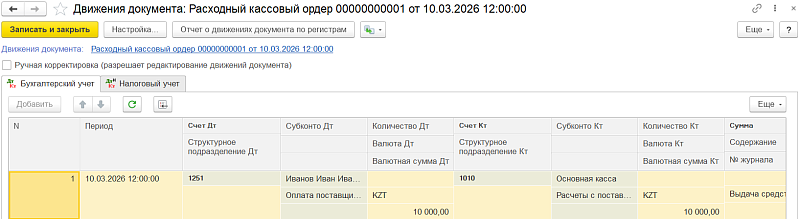 - Расходный кассовый ордер