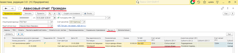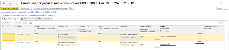 Банк и касса → Авансовые отчеты