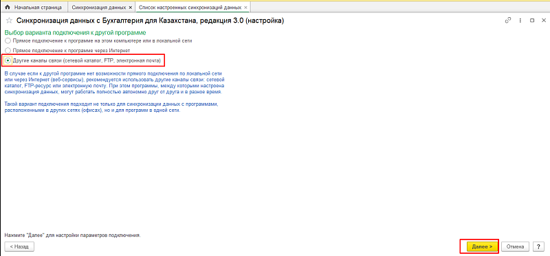 - Укажите путь к папке с базой для обмена.