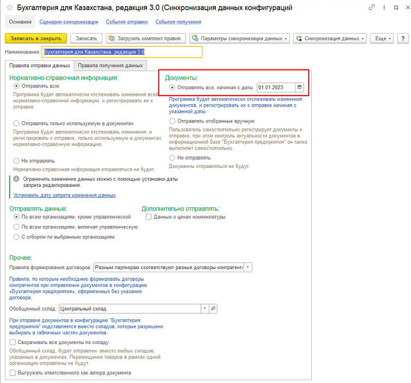 - Из Розницы в Бухгалтерию — в основном документы и справочники, необходимые для бухгалтерского и налогового учета.