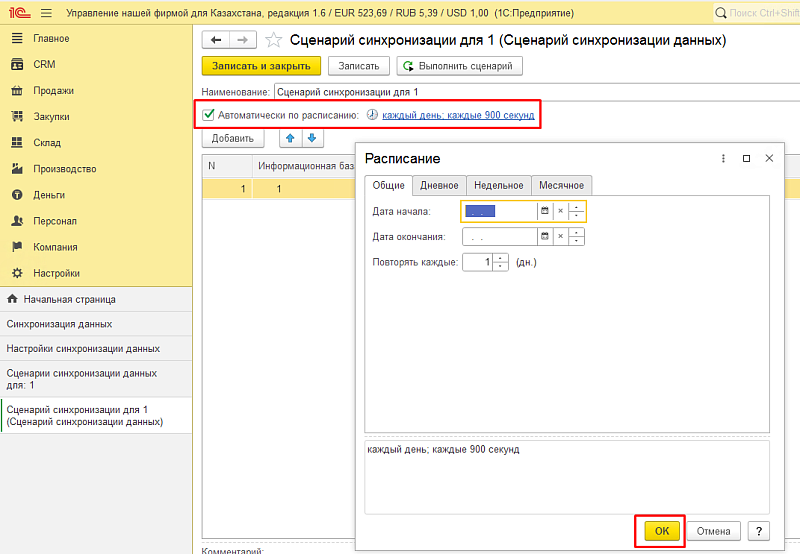 - Автоматически по расписанию (настраивается при первой выгрузке или позже).