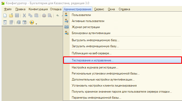 Способ № 3. Тестирование и исправление в режиме Конфигуратор