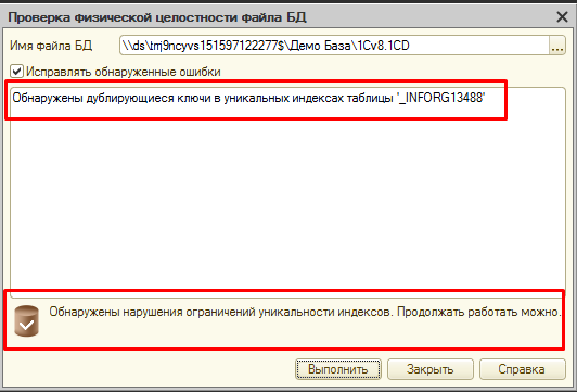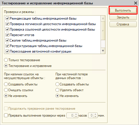 С помощью этого инструмента можно исправить, как правило, некритичные ошибки 1с. Если база данных осталась повреждена, следующий шаг, как восстановить, за утилитой chdbfl.exe.