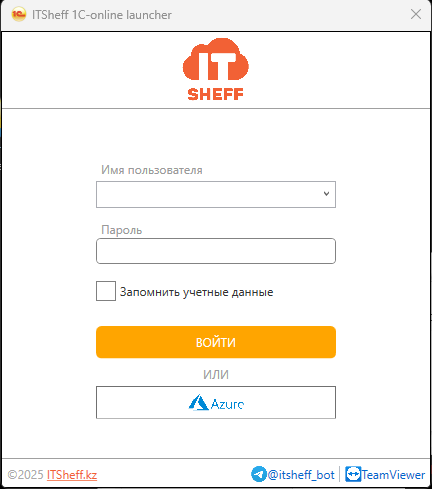 3. При подключении к облаку появится окно для ввода учетных данных. Они должны были вам прийти в сервисном письме от ITsheff (если по какой-то причине у вас его нет обратитесь в техподдержку). Введите Имя пользователя и Пароль, нажмите кнопку «ОК». Можно отметить «Запомнить учетные данные», чтобы при следующем входе не вводить их заново.