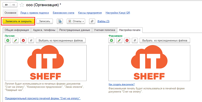 Теперь логотип и подпись будут автоматически отображаться в печатных формах: