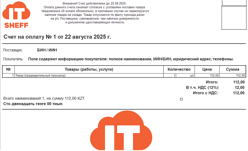 - «Счет на оплату»;