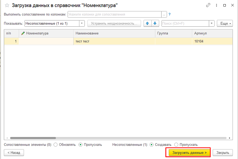 Если все корректно, нажмите «Загрузить данные».