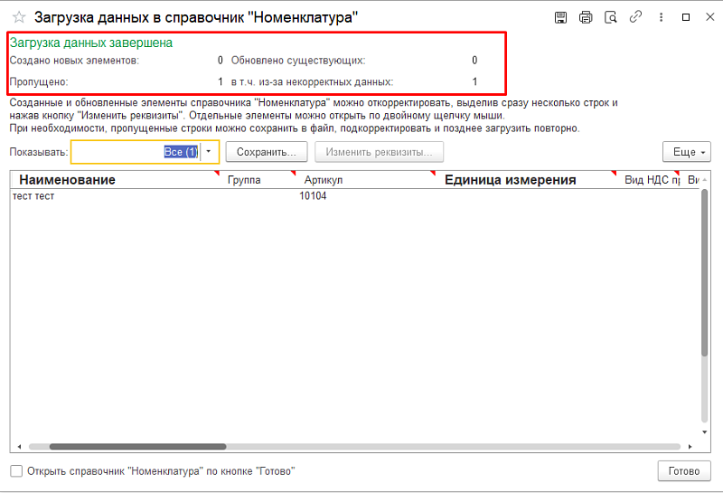 Вариант 1: Загрузка в справочники