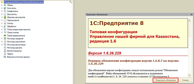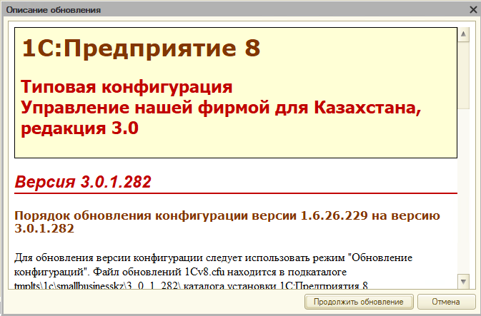 После завершения перехода обновите конфигурацию до актуального рабочего релиза УНФ 3.0.
