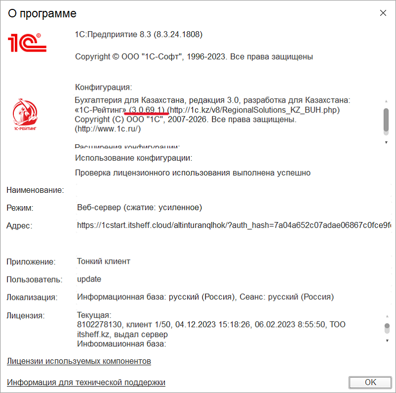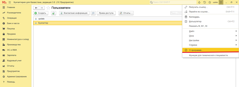 Шаг 1. Проверка версии базы «1С: Бухгалтерия для Казахстана»