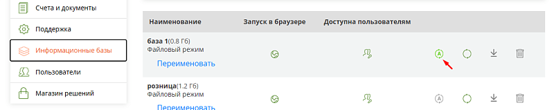 - включите автообновление в Личном кабинете клиента в разделе «Информационные базы», нажав кнопку «А» напротив нужной базы;