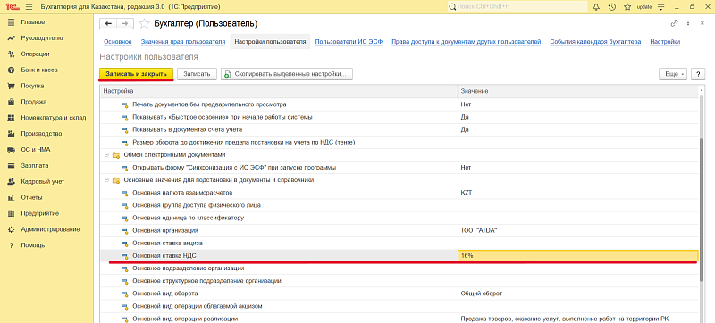 После этого для выбранного пользователя ставка НДС по умолчанию будет установлена 16%.