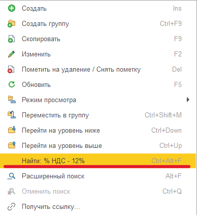 • нажмите «Еще» — «Найти: %» — «Ставка 12%».