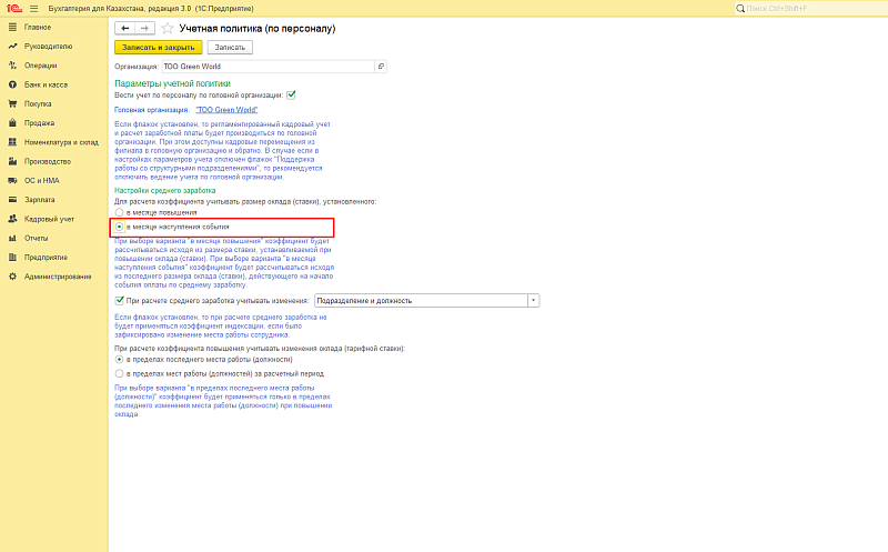 В «Настройки среднего заработка» устанавливаются правила расчета средней заработной платы.