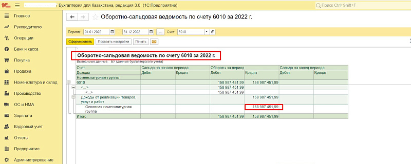 «Отчеты» — «ОСВ по счету БУ» — «счет 6010».