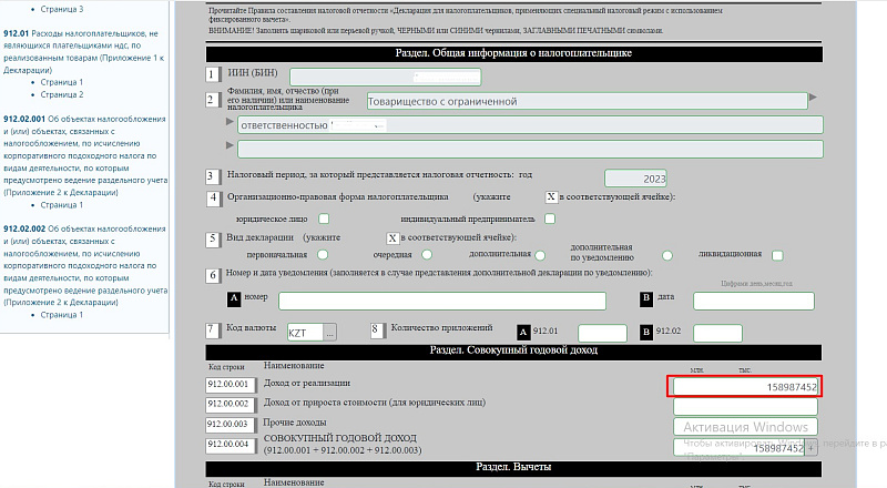 В конфигурации «1С: Бухгалтерия для Казахстана» 8.3 нет инструментов для заполнения формы 912 Декларации для налогоплательщиков, которые применяют фиксированный вычет. Поэтому заполнять форму надо вручную в кабинете налогоплательщика или в приложении СОНО.