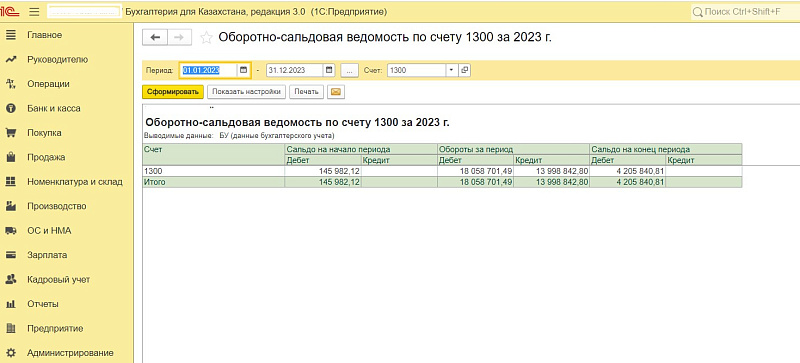 III — приобретено ТМЗ — сумма по дебету ОСВ 1300.