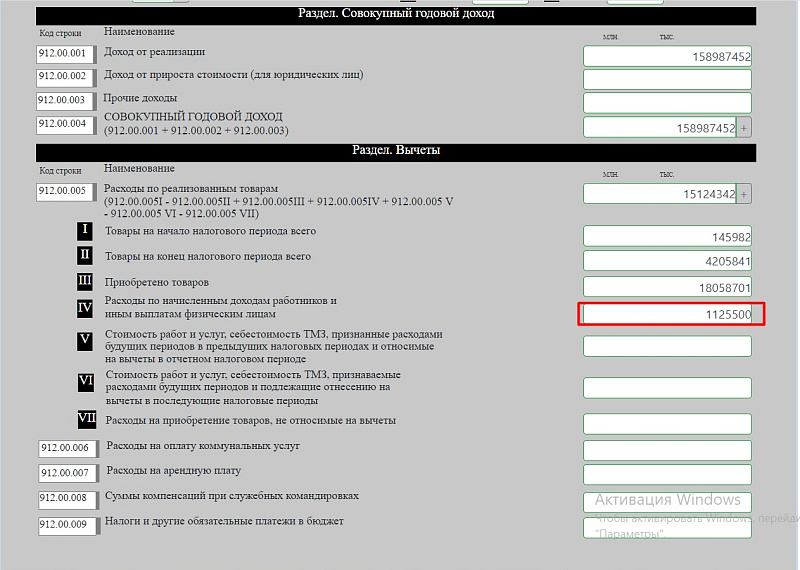Строку 912.00.005 VII заполняем, если есть расходы, которые не берем на вычет (согласно пп.1 ст. 115 Кодекса вычету не подлежат затраты, не связанные с деятельностью, направленной на получение дохода).