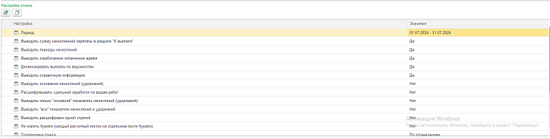 - В поле «Настройки отчета» установите нужные флажки и укажите значения, по которым будет выводиться отчет.