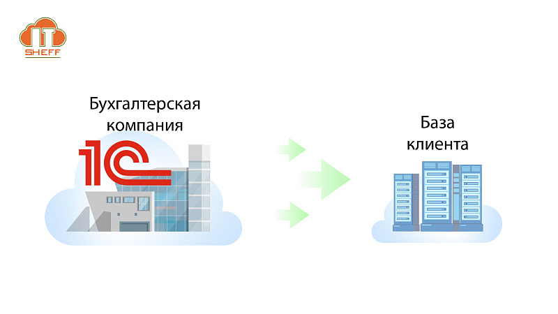 - База бухгалтерской компании. В этом случае бухгалтерская компания является Администратором баз, с которыми работает. База создается и хранится в облаке на сервере бухгалтерской компании или облачного провайдера. Клиент присоединяется к базе в качестве Пользователя. Все технические вопросы работы баз 1С решает бухгалтерская компания. При таком способе проще привести базы к единому стандарту и внедрять собственные доработки. Для бухгалтерских компаний, которые хранят базы на серверах провайдера, регистрация Пользователей на свой контракт, чаще всего выгоднее, чем когда они регистрируются отдельно. Большинство облачных провайдеров предоставляет дополнительные скидки при большом количестве Пользователей. Например, в зависимости от общего количества, цена одного Пользователя в облаке ITsheff может снизиться более чем в два раза.