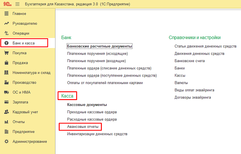 О любых расходах подотчетных средств сотрудник отчитывается перед работодателем через авансовый отчет. В 1С форма для его заполнения находится в подразделе «Касса» раздела «Банк и касса». Подробнее о заполнении авансового отчета в 1С мы рассказываем в отдельной . Почитайте, в ней даже видеоролик есть.