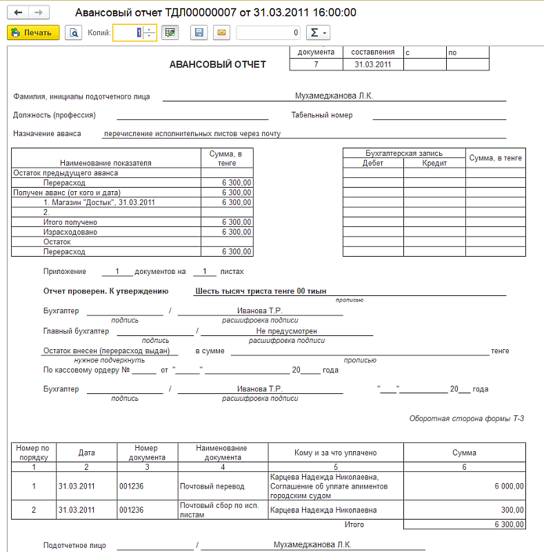 Для тех кто, как и мы, предпочитает рационально использовать бумажные носители, в ITsheff разработали внешнюю печатную форму, которая позволяет печатать на одной странице и лицевую и оборотную стороны авансового отчета.