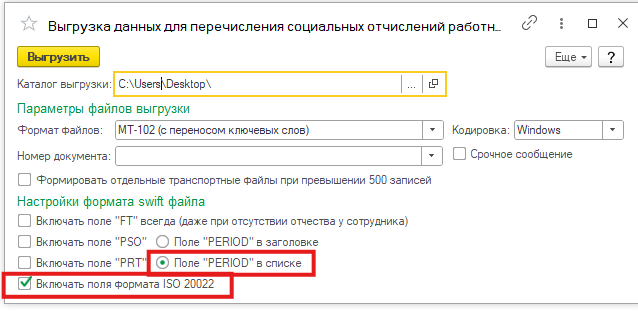 Экспорт файла в формате ISO 20022