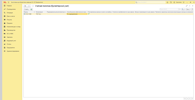 В «1С:Бухгалтерия 8 для Казахстана», ред. 3.0, учетная политика оформляется через регистр сведений «Учетная политика (бухгалтерский учет)».