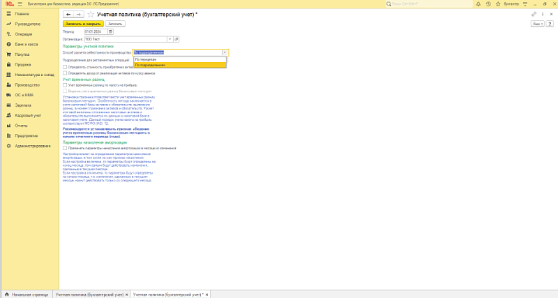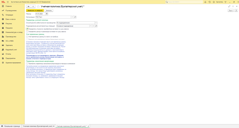 Настройка учетной политики — это один из первых и самых важных этапов при работе с «1С:Бухгалтерия 8 для Казахстана». От корректности заполнения всех параметров зависит точность и соответствие бухгалтерского учета требованиям законодательства.