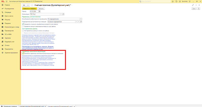 - Если установлен признак «Применять параметры начисления амортизации в месяце их изменения», новые параметры начнут действовать сразу.