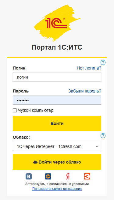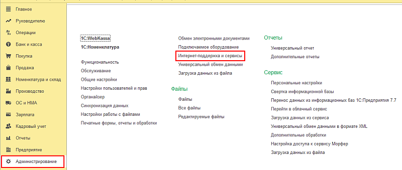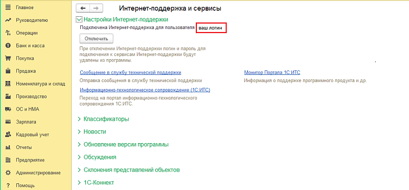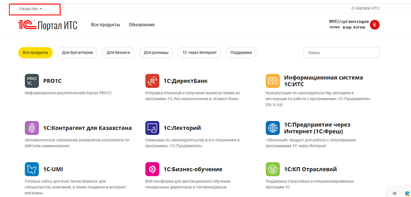 - Через программу 1С. Например, в «1С: Бухгалтерия для Казахстана» надо зайти в разделе «Администрирование» — «Интернет поддержка и сервисы». Нажмите на свой логин. 1С автоматически направит вас на портал ИТС.