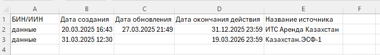 - Дата создания — когда впервые активировался сервис для этого БИН/ИИН.