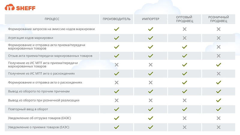 Таблица процессов, которые можно автоматизировать с помощью сервиса «1С: Маркировка»