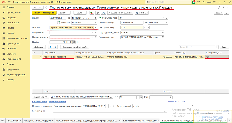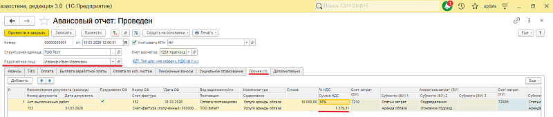 Сотрудник указывается как подотчетное лицо.