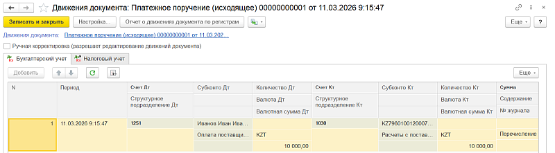 При оплате важно корректно отразить две операции: