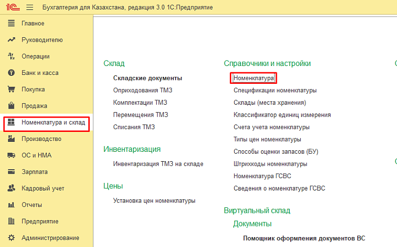 Как создавать номенклатуру в «1С: Бухгалтерия для Казахстана»