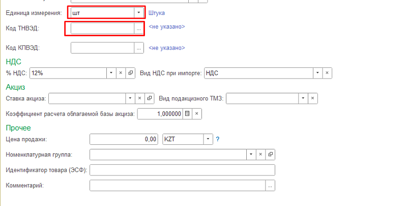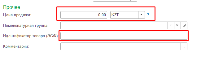 5. Далее можно указать цену продажи и идентификатор товара для ЭСФ.