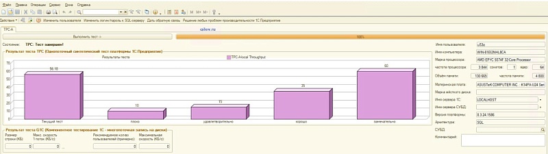 При этом тест Гилева не является абсолютной мерой производительности бизнеса. Он не показывает, насколько быстро конкретный документ будет проводиться в вашей конфигурации, но дает понимание потенциала инфраструктуры.
