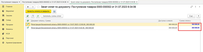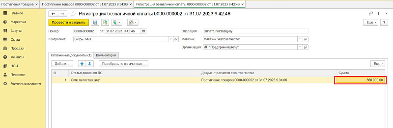 В документе заполняем оплаченную сумму.
