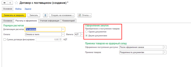 После настройки договора с контрагентом остается оформить документы закупки товаров.
