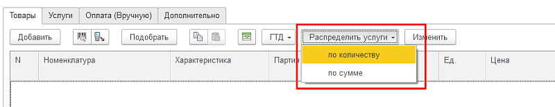 — по сумме — услуги распределятся пропорционально стоимости товаров по договору с поставщиком.