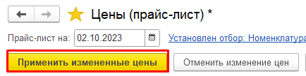 Для регистрации новых цен следует выполнить команду «Применить измененные цены».