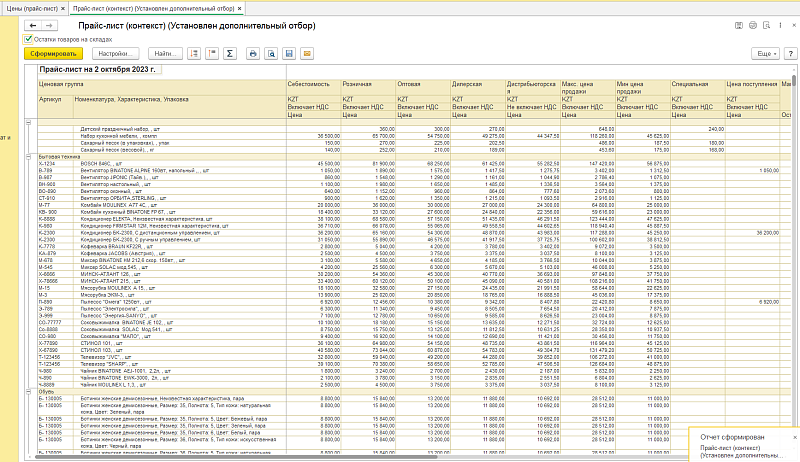 Используйте команду «Прайс-лист» для формирования прайс-лист по отобранным в списке позициям.