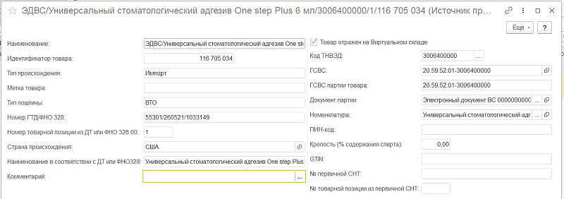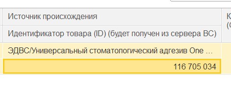 После этого поле «Идентификатор товара (ID)» автоматически заполнится и сформируется новый источник происхождения с признаком учета ВС.