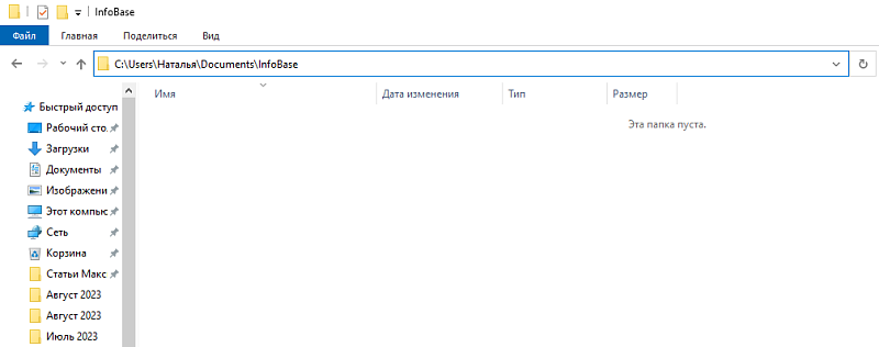 По умолчанию все файлы базы хранятся в папке InfoBase. Обычно путь к ней выглядит: C:\Users\Имя Пользователя\Documents\InfoBase.