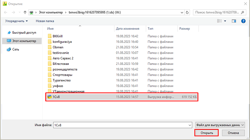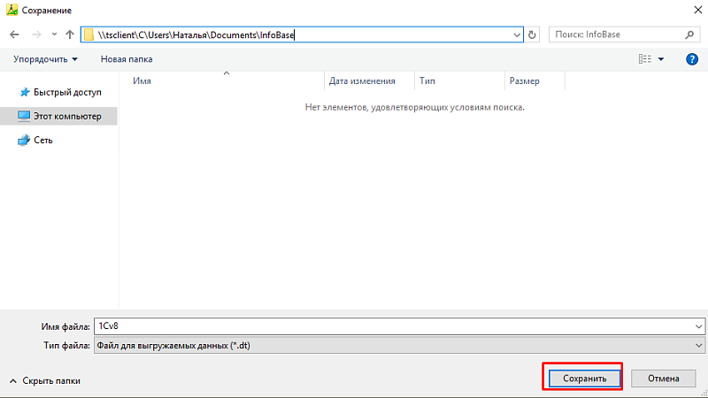 - Надо выбрать папку для выгрузки БД в формате *.dt.