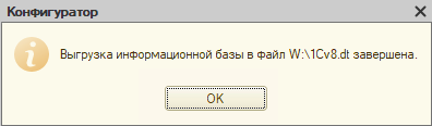 - Ждем оповещения, что база успешно выгрузилась.