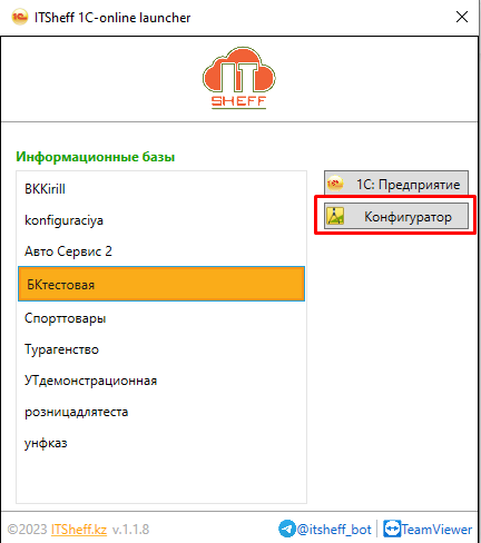 - Зайдите в 1С в режиме Конфигуратор.